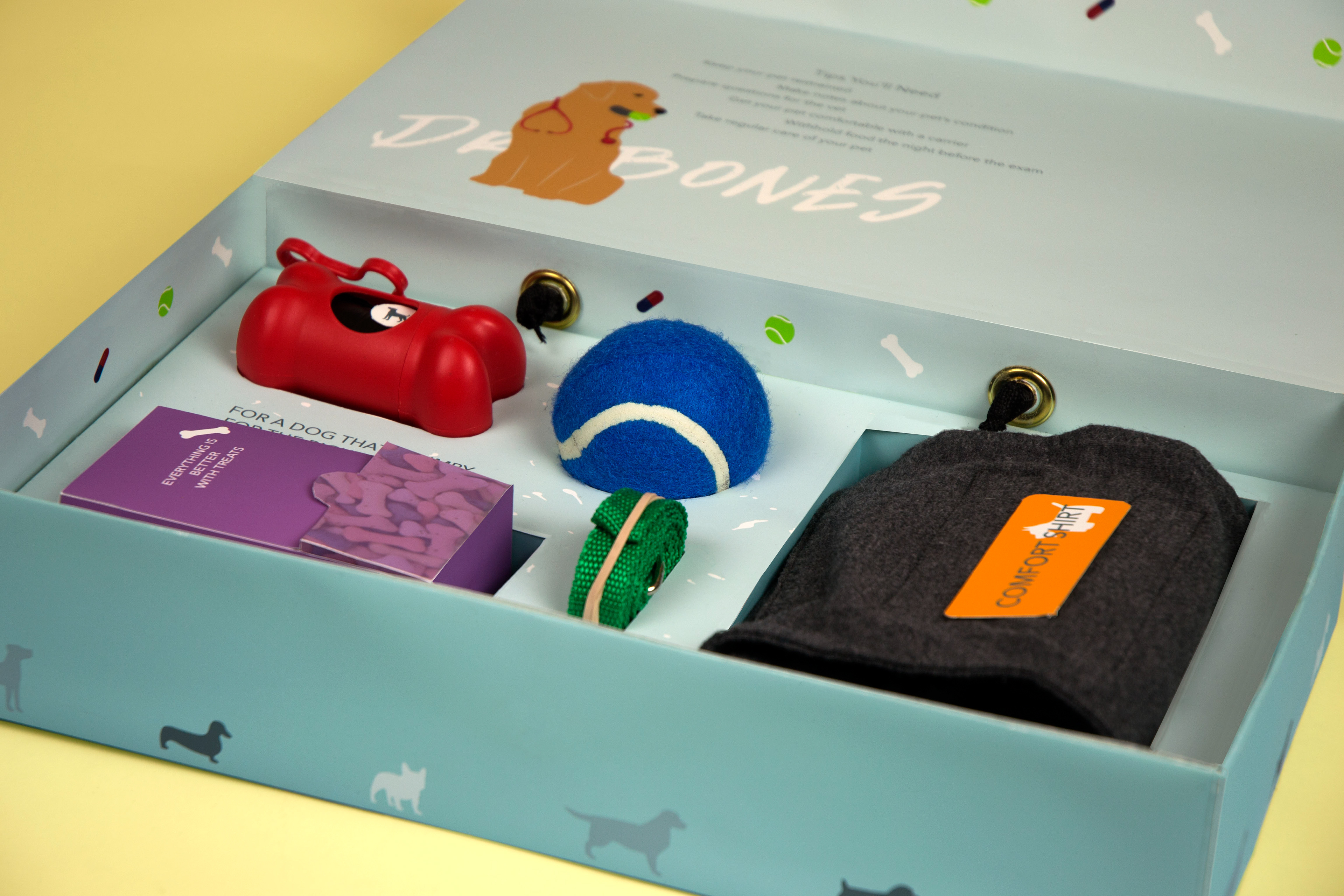 Here is an on-the-go kit designed for dog owners. Its purpose is for taking dogs to the vet, or just going out in general. The design was influenced by turning a tedious and stressful chore into an easier time.